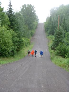 | It seems like it rains every day. You can see the great pumpkin walking down the road in this picture. The wet weather helps to maintain a healthy mosquito and black-fly population. |