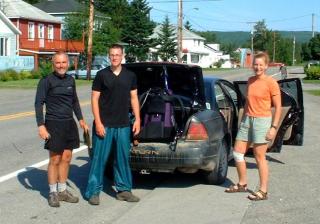 | After dropping off the other's to hike Beth and I drove to Matane, QC to get Judy's film developed. We saw 2 hitch-hikers along the road and recognized them as "Mountain Dancer" and his son, now called "Rock Man". (He likes to collect rocks and carries them in his pack.) The son had hurt his ankle and they decided to return home in Quebec City. We drove them to the bus station and then continued on our errands. |