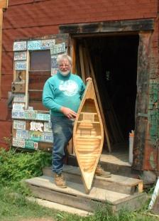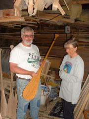 Bill explained all about how his family has been making canoes and paddles for 3 generations. Here he is showing Judy a $1000 birdseye maple paddle he carved.