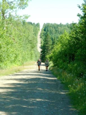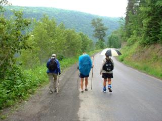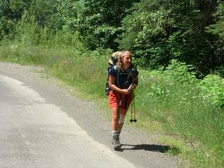 | The trail in this area is mainly in the woods. The terrain is a lot different than the road walks of New Brunswick. With the steeper climbs, the river fords, and the "newness" of the trail the pace is slower. |