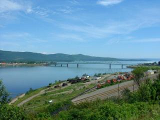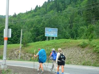 The next day they hiked a short roadwalk to the bridge into Matapedia, Quebec.