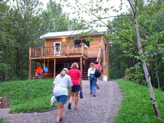 | We had an appointment to see David LeBlanc, the contact for the next area. He operates Nature Adventure, http://www.matapediaadventure.ca.tc, a service and rental company for hiking , canoeing, kayaking and "dog back packing". He reviewed the maps and pointed out where I could meet the hikers. |