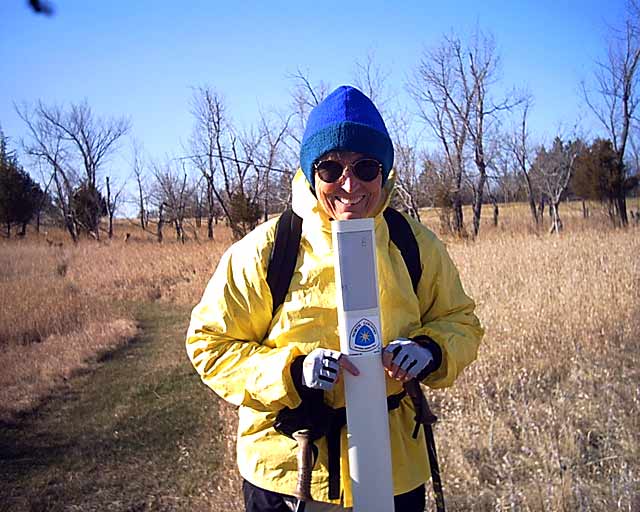 The trail is marked by posts but has not been mowed or traveled enough to make a