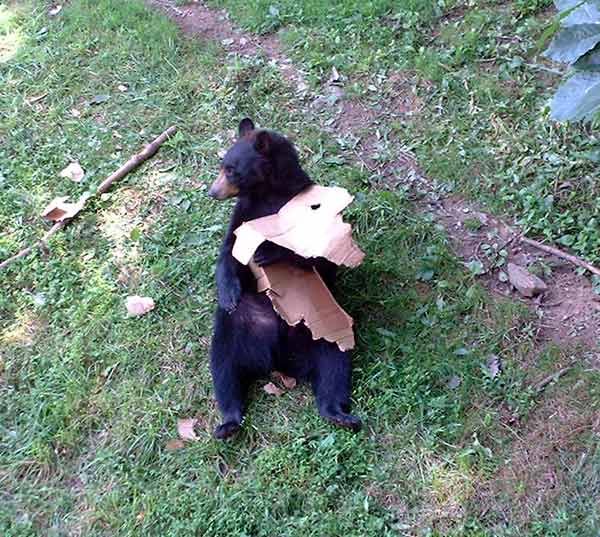 We saw this bear playing with a cardboard box. He would tear pieces off