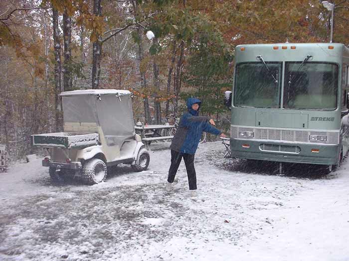 and 3" the next with 40 MPH winds. The campground road was icy and