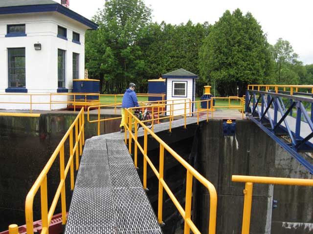 trail actually crosses the canal atop the lock gates.
