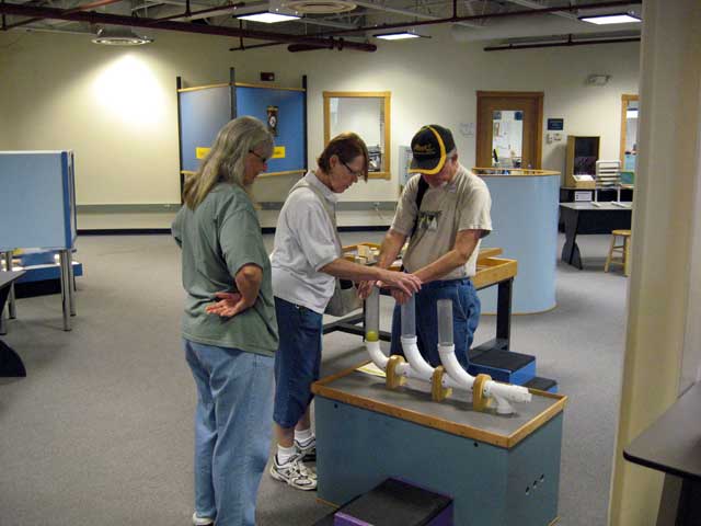 Here Jane and John were blowing ping pong balls out of the pipes.