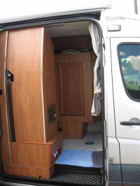 rear has a electric operated sofa that makes into either twin beds or a king if