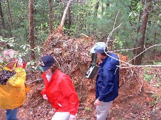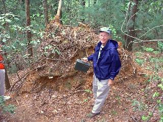We hiked and “treasure hunted”. It’s called geo-caching. Someone has hidden a container in the woods and posted its’ location on the web. You find it using a handheld GPS. John found the first one. Inside are things left by other people. You can take anything but must leave something in its place. We took a pack of batteries and left a CD game.