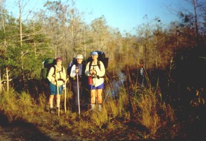 This is Loretta, Joan Hobson and Judy at the start of the Florida Trail on Loop Road in the Everglades on Jan. 14, 2000.