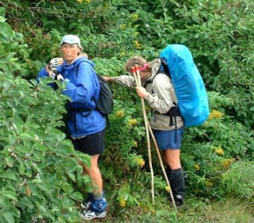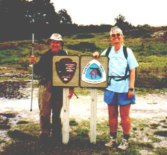 This is Joan and Judy at the end of the Florida Trail in Ft Pickens, Florida, April, 2000.