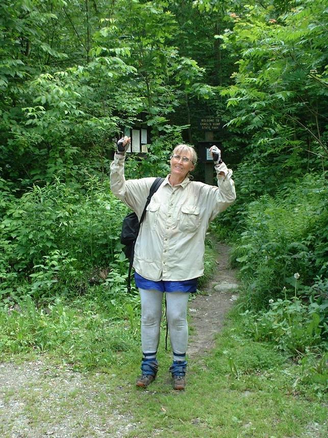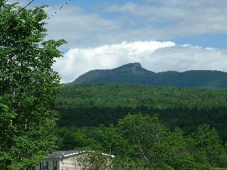 She ended at the parking lot on River Rd. just below I-89. The last section was over Camel's Hump. She didn't like having to rock climb over the top. This is a picture of Camel's Hump from the road about 10 miles away. The top is 4083'. |